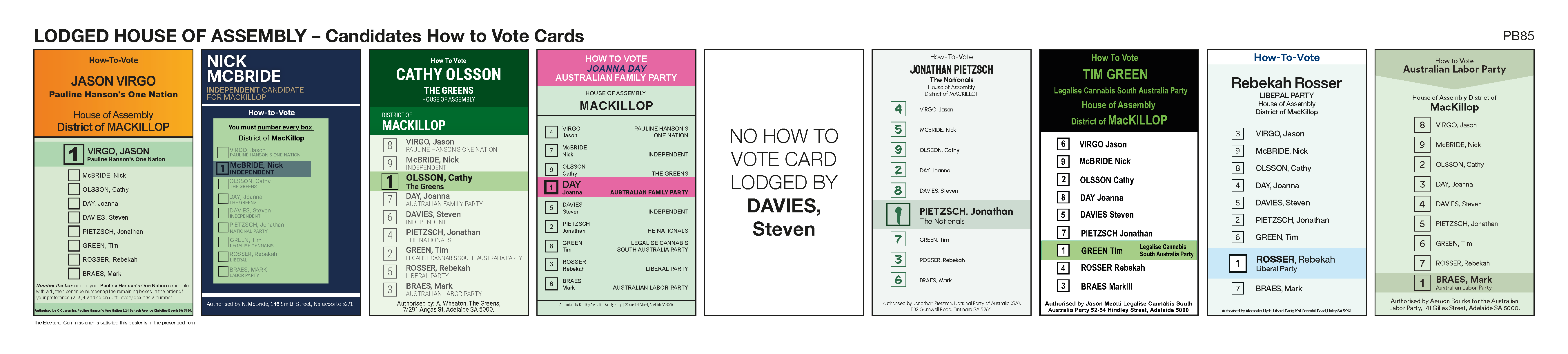 | 2 | McBRIDE, Nick* | INDEPENDENT | 0887621211 | nickmcbride.com.au | ||