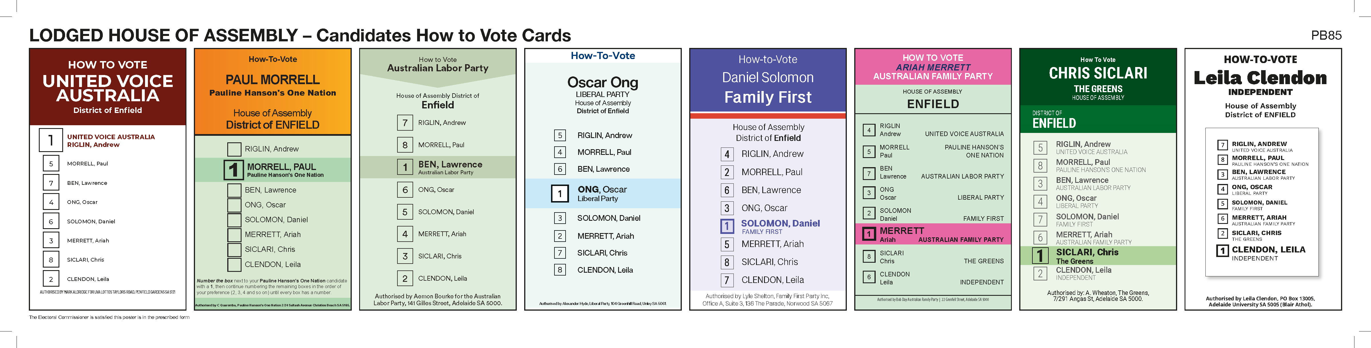 | Enfield | 1 | RIGLIN, Andrew | UNITED VOICE AUSTRALIA | 0412489902 | ||