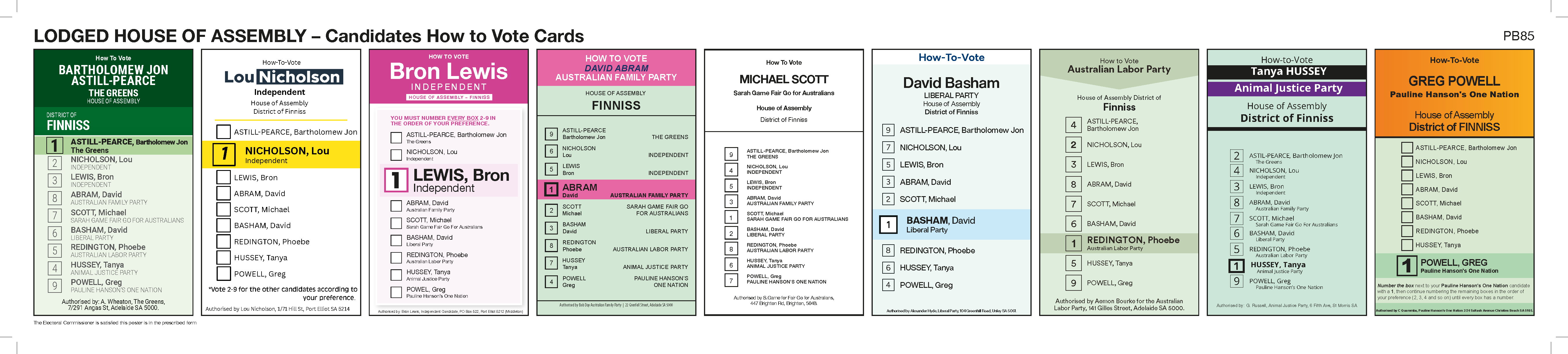 | 3 | LEWIS, Bron | INDEPENDENT | 0416192119 | voiceforfinniss.com.au/ | ||