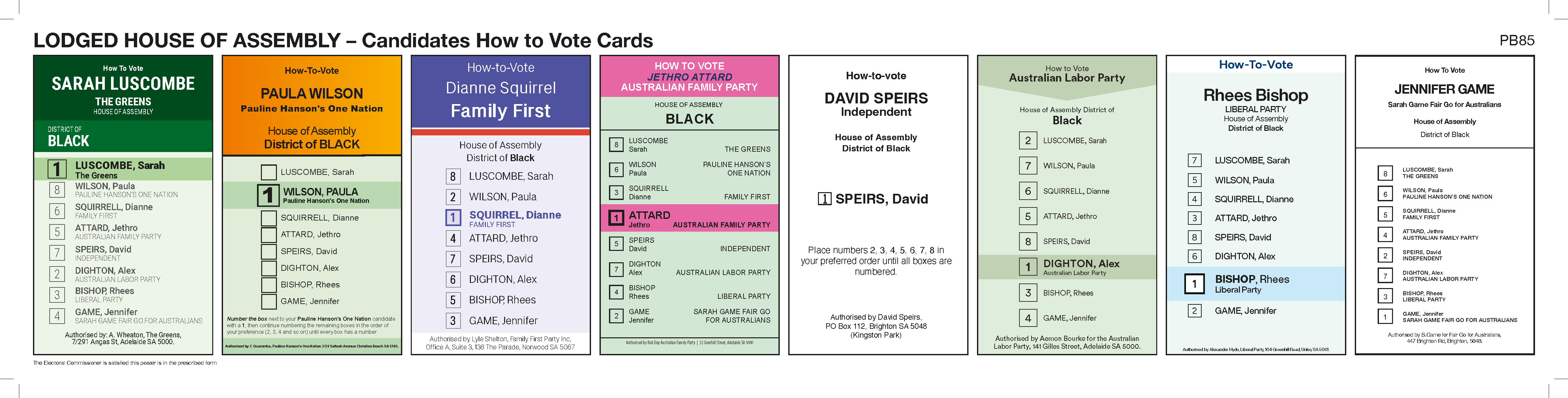 | Black | 1 | LUSCOMBE, Sarah | THE GREENS | greens.org.au/sa/person/sarah-luscombe | ||