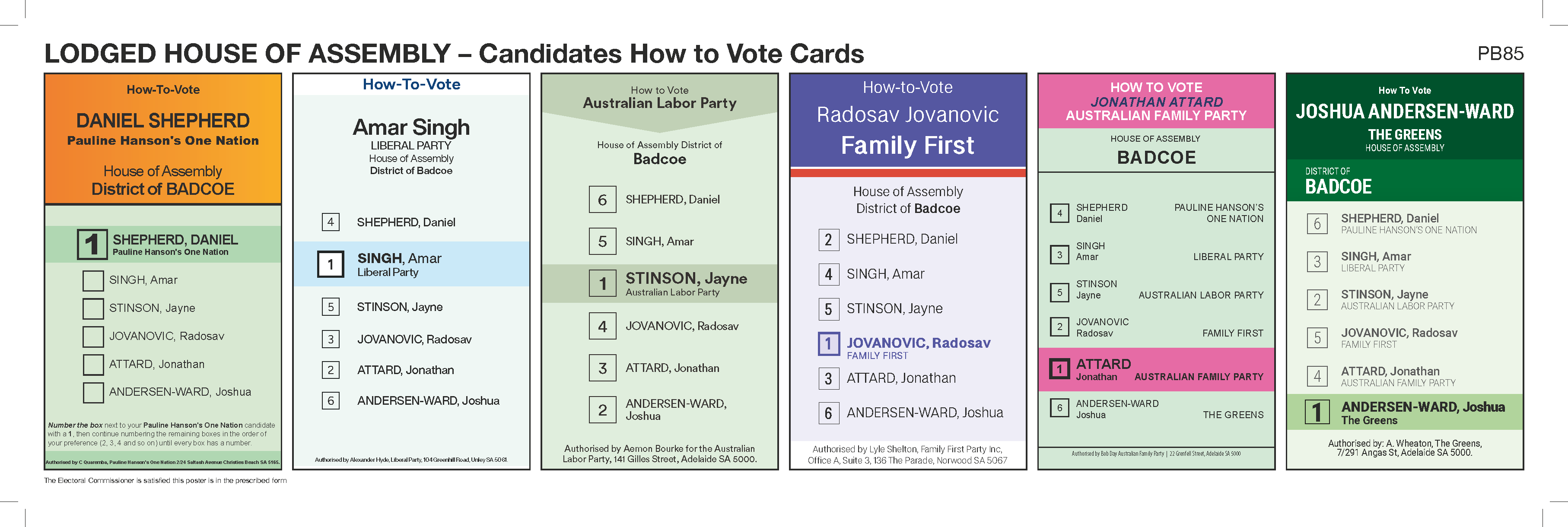 | Badcoe | 1 | SHEPHERD, Daniel | PAULINE HANSON'S ONE NATION | |||