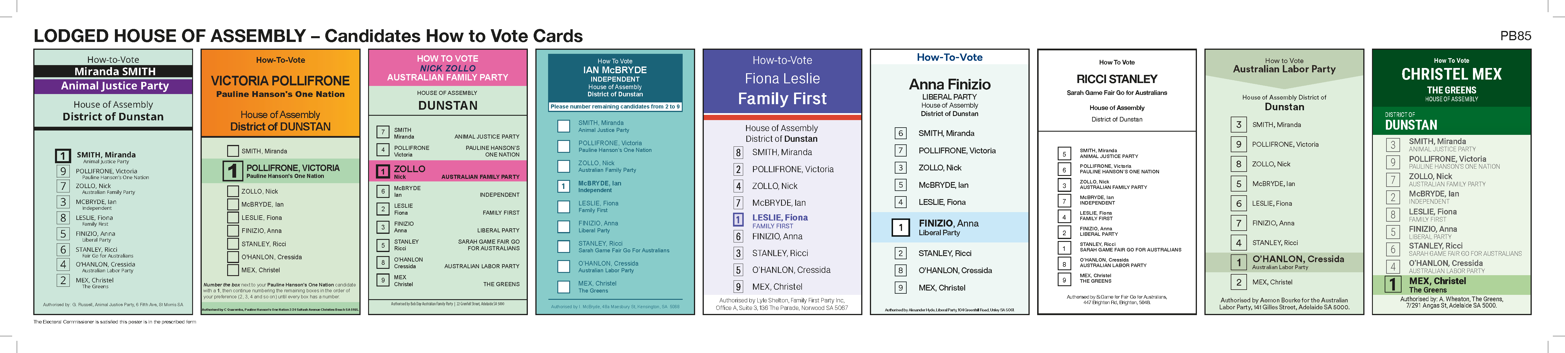| Dunstan | 1 | SMITH, Miranda | ANIMAL JUSTICE PARTY | |||